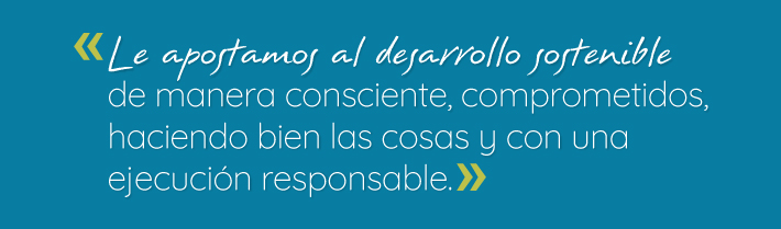 Le apostamos al desarrollo sostenible de manera consciente, comprometidos, haciendo bien las cosas y con una ejecución responsable, para así lograr un desempeño económico que genere un impacto positivo en nuestra gente, las