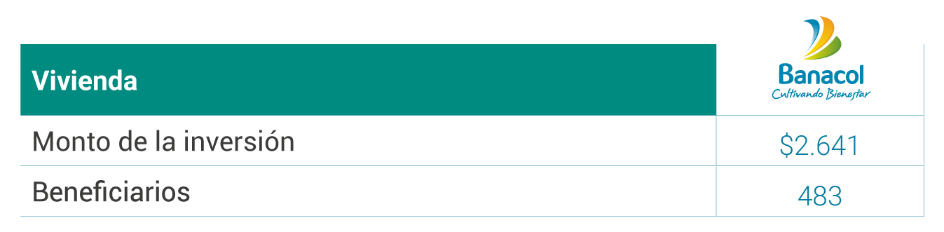 • Logramos la postulación ante Comfama de 305 familias al subsidio de vivienda nueva y mejorada, consiguiendo la asignación de 69 subsidios y, por primera vez, la asignación de 35 subsidios de mejoramiento de vivienda, para familias de comunidades internas del Grupo Empresarial, para su vivienda nueva o mejorada.