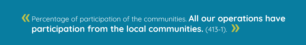 Our social investment model focuses on recognizing the family as the key to social changes, the neighborhood has a community developer, and the community as a center for social processes to consolidate our social responsibility strategy in the regions.