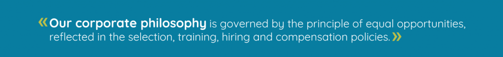 (103-2) Starting with the first interaction with people, in the attraction, recruitment, and selection process, we have policies and strategies that ensure equal opportunities and allow us the linking of suitable talents who not only have technical skills, but who share our corporate principles and values and, above all, it guarantees that they are excellent human beings.
