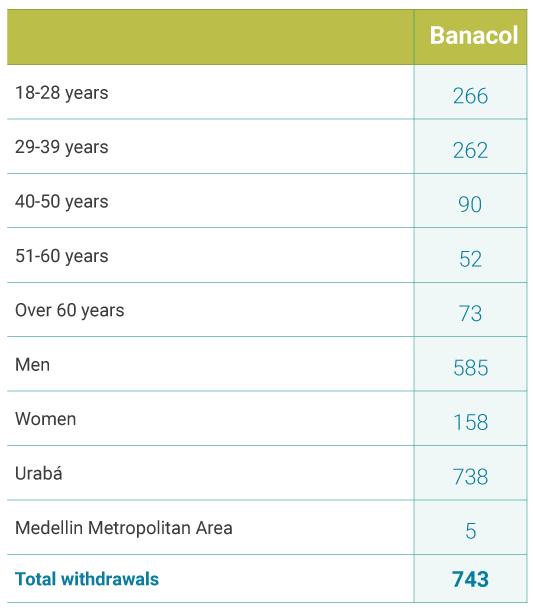In light of this new world reality, our priority was the health and safety of all our employees. Implementing the appropriate protocols, socializing them, internalizing them, and ensuring a self-care culture, has enabled us to continue operating in a safe environment. Furthermore, maintaining our Work Health and Safety Management System enables us to decrease the frequency and severity of workrelated accidents by 13.11% compared to 2019, in our Urabá and Envigado operations