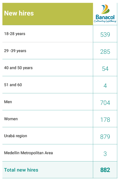 (103-1) Our human talent is the core of the organization. At Banacol our employees are our biggest asset. People are a key factor in achieving our organizational objectives and carrying out our business. We are constantly making new and improved practices in the organization so we can have a trained, committed, high-quality team, in which we can cultivate well-being, generating a balance in their lives